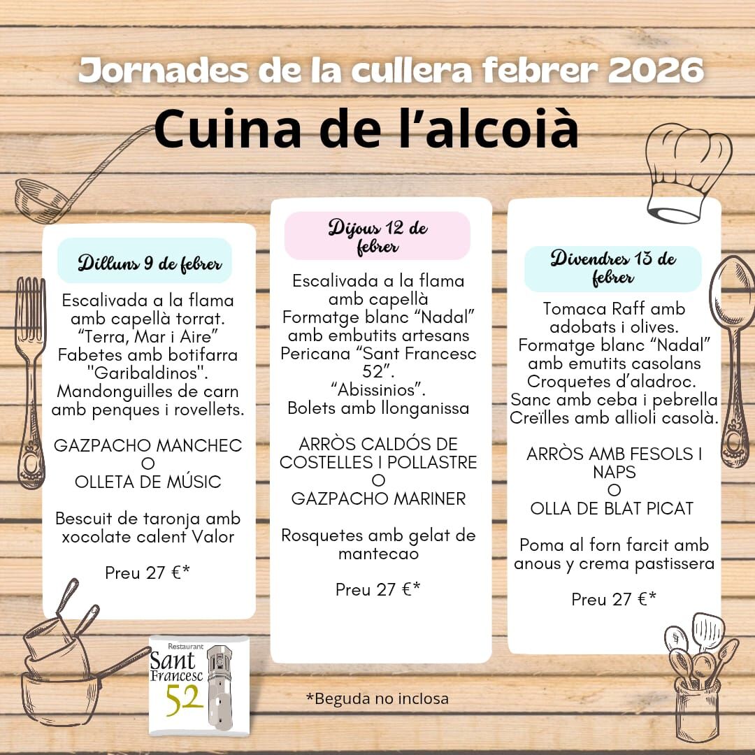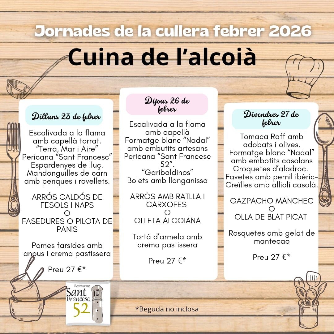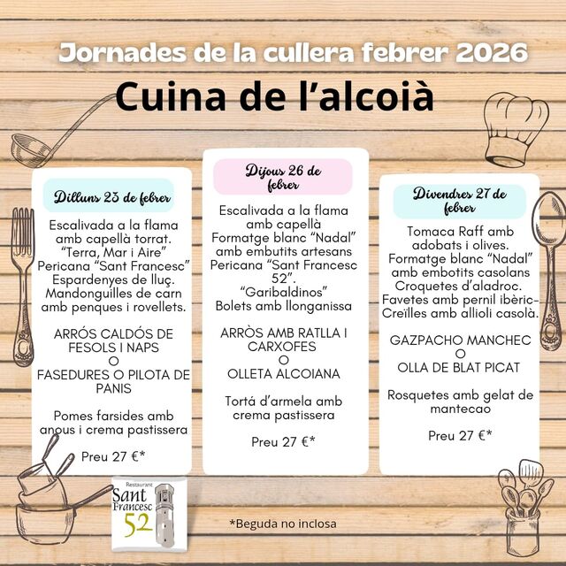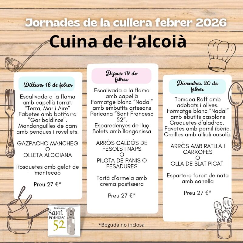 ➡Al restaurant, durant estes jornades, volem donar protagonisme a la gastronomia de muntanya i recuperar els plats de cullera tradicionals de les nostres àvies. A més, ens sentim molt identificats amb la cuina de la nostra terra, amb receptes com lólleta alcoiana, la borreta, l'olla de blat, pilotes de dacsa , gaspaxos, putxero. La nostra intenció és portar a la taula l’essència del nostre paisatge i gaudir de tot el que ens envolta Utilitzan producte local, donant la importància que es mereix.
